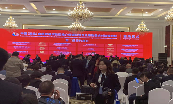 營業(yè)陳志剛室長參加中國(湖北)自由貿(mào)易試驗區(qū)湖北省企業(yè)采購需求對接簽約會,同湖北五方光電簽署5000萬美金意向協(xié)議。