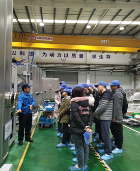 裝置生產(chǎn)部事先詳細(xì)制定了參觀路線、參觀機(jī)臺(tái)方案,在學(xué)生們參觀車間時(shí)作了細(xì)致的現(xiàn)場講解。鍍膜、機(jī)械、電氣、生產(chǎn)等有關(guān)部門的部長、課長作了專門的有關(guān)鍍膜機(jī)業(yè)務(wù)介紹的PPT,并現(xiàn)場答疑。